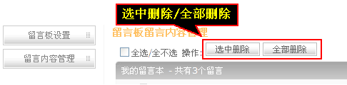 这里是对留言进行删除操作,可以选中“删除”或者选中“全部删除”。