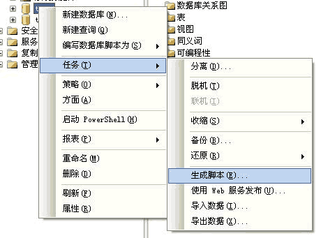 拷贝生成的sql语句选择服务器的数据库。右键新建查询-->把第一步生成的语句拷贝进去执行。